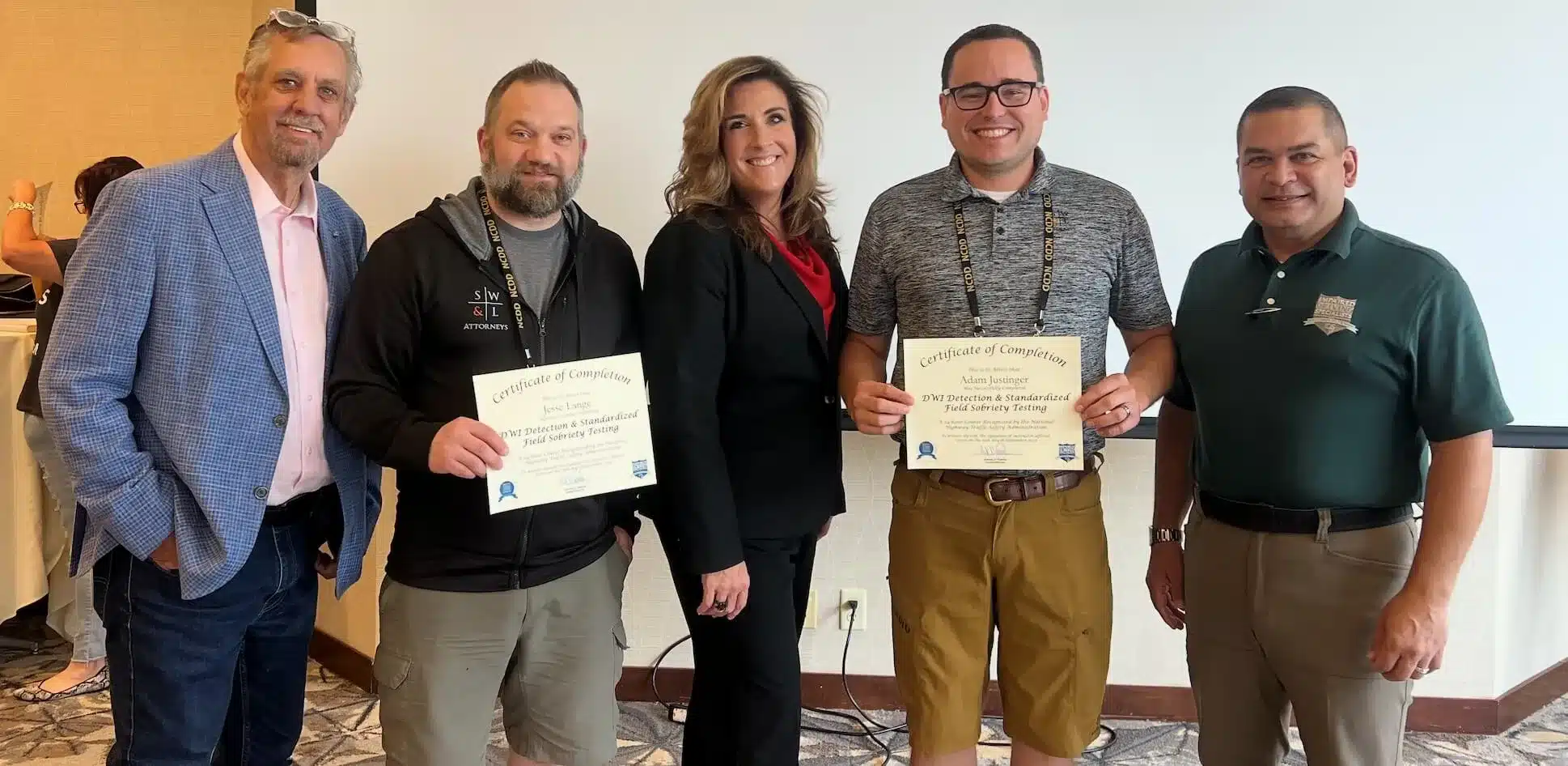 SW&L Criminal Defense Team Lawyers Jesse Lange and Adam Justinger with National College for DUI Defense faculty members Don Ramsell (left), Shelly Behan (center), and Anthony Palacios (right).